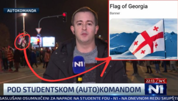 OBOJENA REVOLUCIJA! Na protestu "studenata" na Autokomandi pojavila se i zastava Gruzije u kojoj se sprovodi obojena revolucija!