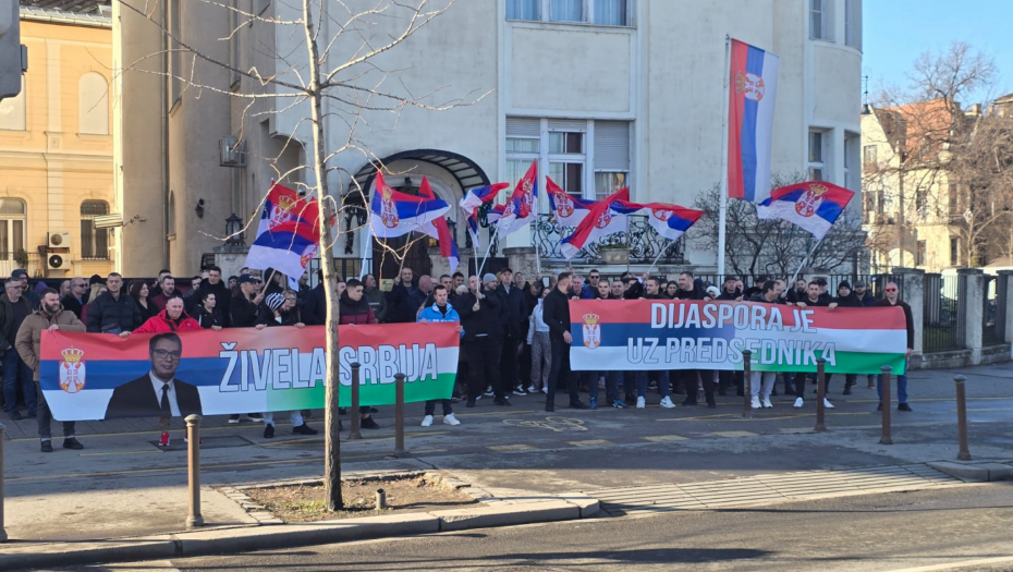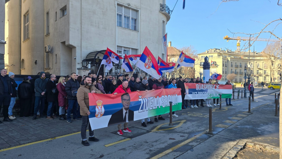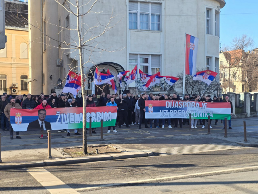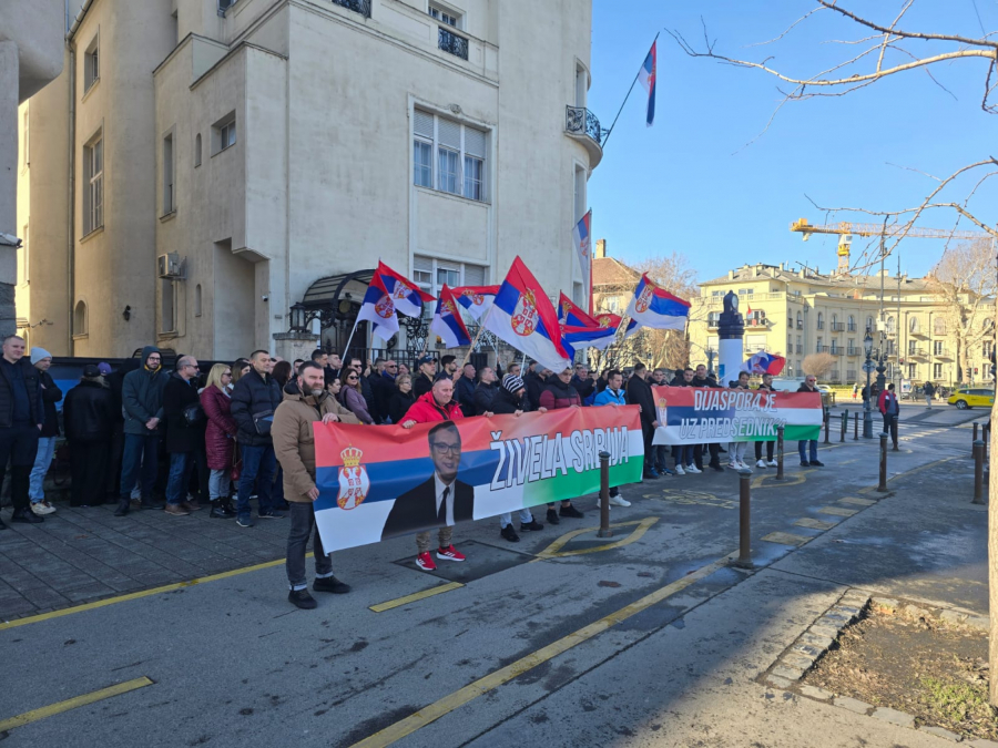 Grupa Srba okupljenih ispred Ambasade Srbije u Mađarskoj poslala je snažnu poruku podrške predsedniku Aleksandru Vučiću.