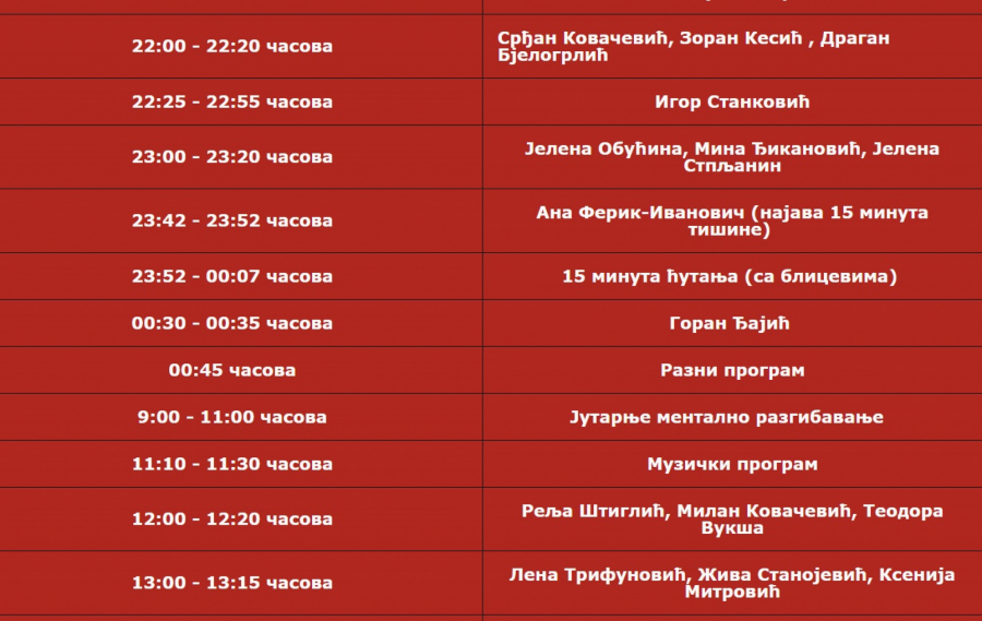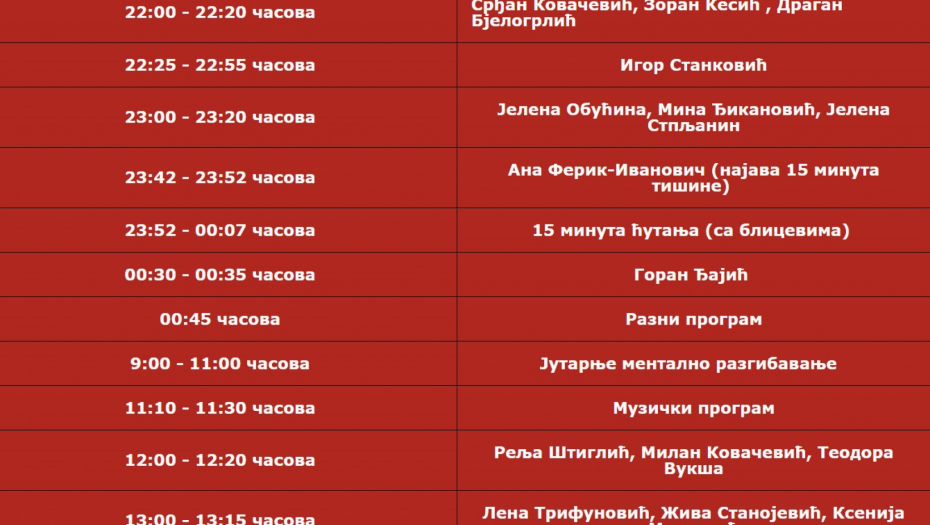 Prema informacijama prozapadnih medija, na protestu bi trebalo da govore Zoran Kesić, Ivan Ivanović, Dragan Bjelogrlić i drugi glumci i opozicioni novinari.