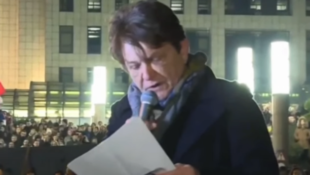 BJELO, KO TI JE PISAO GOVOR? Opozicioni glumac vidno pogubljen jedva čitao tekst na protestu (VIDEO)