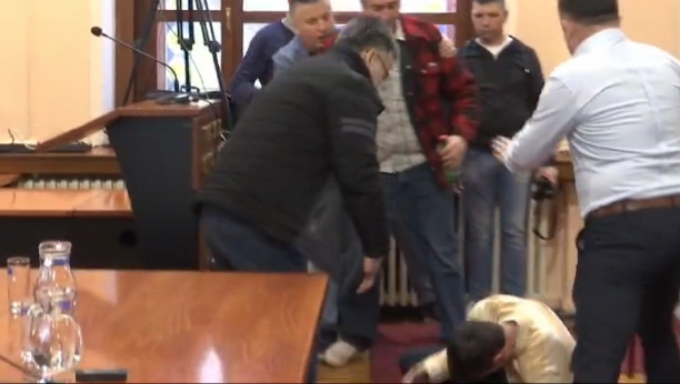 Na današnjem zasedanju Skupštine grada Užice, dogodio se sraman incident kada je jedan od opozicionih odbornika kako se vidi na snimku, napao i bavcio na pod radnika tehničke službe.