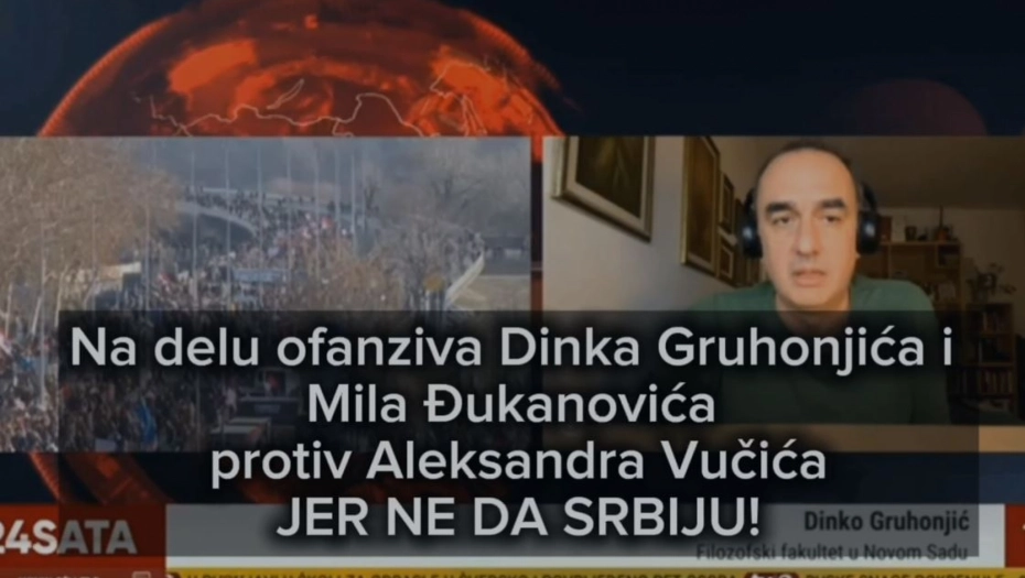 Dinko Gruhonjić pokrenuo je u medijima iz regiona kampanju protiv Aleksandra Vučića. Ovog puta je za kampanju koristio E TV Mila Đukanovića. Srbe je ponovo nazvao genocidnim, dok je tvrdio da se Vučić meša u politiku Crne Gore.