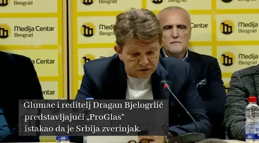Glumac i reditelj Dragan Bjelogrlić predstavljajući ''ProGlas'' istakao da je Srbija zverinjak!