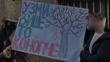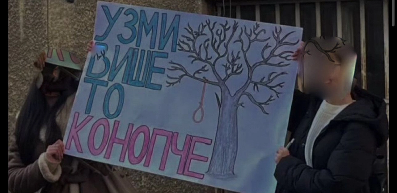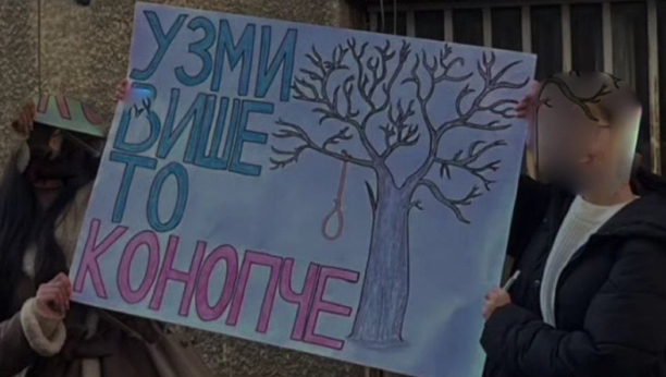 Naime, kako se navodi u samoj objavi, napravljen je transparent na kome piše: ''uzmi više to konopče'', gde je nacrtana omča koja visi na drvetu, a navodi se da je uslikano u dvorištu ''DrvoArt'' škole.