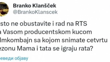 - A zašto ne obustavite i rad na RTS sa Vašom producentskom kućom Filmkombajn sa kojom snimate četvrtu sezonu Mama i Tata se igraju rata - upitao je ga je Klanšček.