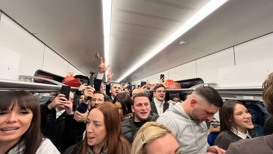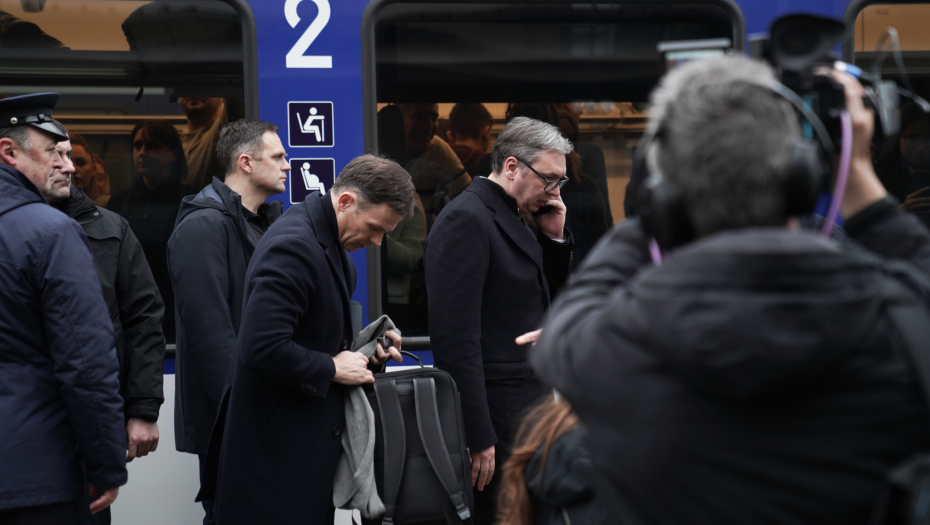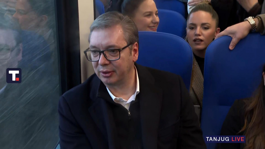 Predsednik Vučić stigao je u voz kojim će putovati u Sremsku Mitrovicu. Njega su mladi u vagonu pozdravili povicima: "Aco Srbine".