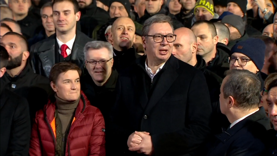- To rade upravo oni koji kolo vode u ovoj obojenoj revoluciji, od Dinka Gruhonjića, Gorana Ješića i njihovih poslušnika. Samo nemojte da ste naivni jer nikada se ovakve operacije ne plaćaju sa toliko novca ukoliko ne postoji važniji politički cilj. Time žele da u potpunosti unište Srbiju, da Srbi i Srbija više nikada ne dignu glavu, jer Srbija je danas ponosna i podignute glave - kazao je Vučić.