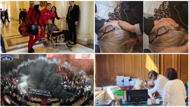 Poslanici opozicije izazvali su haos u Skupštini Srbije. Najmanje tri poslanice su povređene. Oni su bacili više dimnih bombi i suzavac u nameri da spreče rad parlamenta. U jednom trenutku su počeli da gađaju jajima predsednicu Skupštine Anu Brnabić, koja je poručila da će Skupština nastaviti da radi, i da Srbija neće stati. Opozicija je fizički nasrnula na poslanike vlasti. Poslanica Jasmina Obradović kolima hitne pomoći odvezena je u bolnicu, rekla je Brnabić. Kako je rekla, ona je doživela moždani udar i životno je ugrožena!