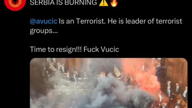 - Srbija gori! Aleksandar Vučić je Terorista. On je vođa terorističke grupe. Vreme je za padne. Jeb*š Vučića - stoji u objavi na Iksu.