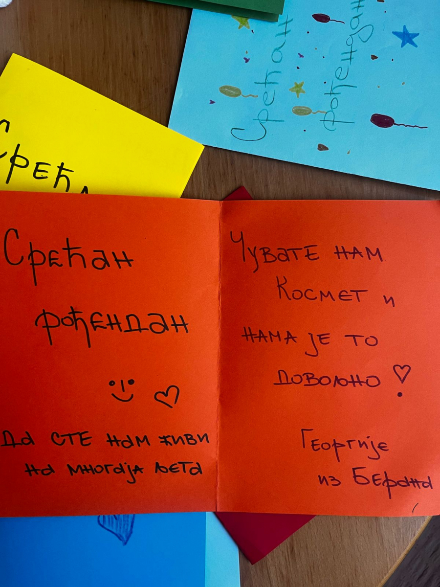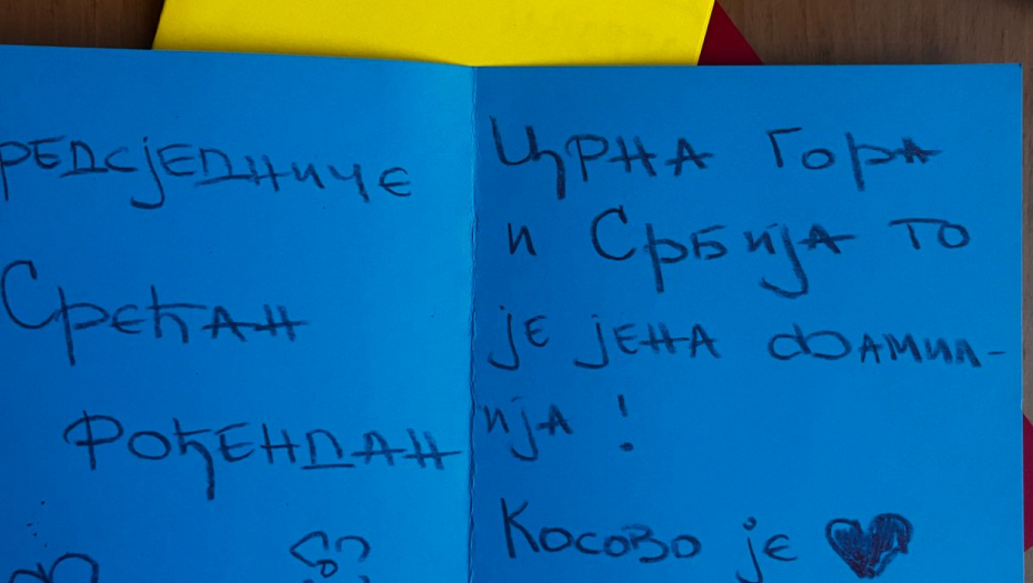 - Srećan rođendan, da ste nam živi na mnogaja ljeta. Čuvate nam Kosmet i nama je to dovoljno - naveo je dečak iz Berana.