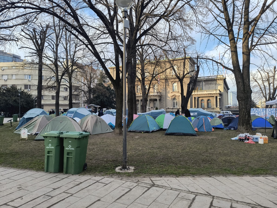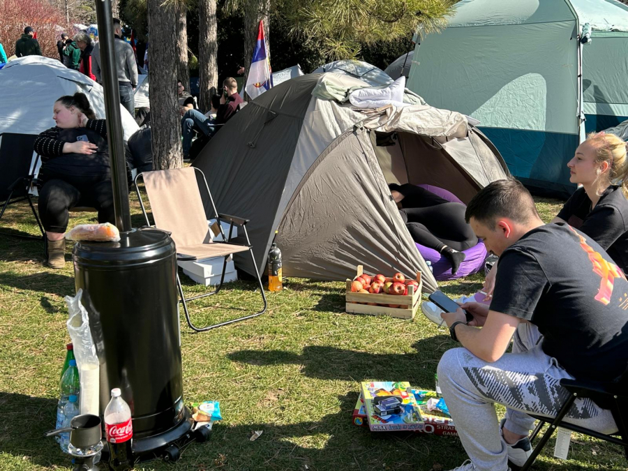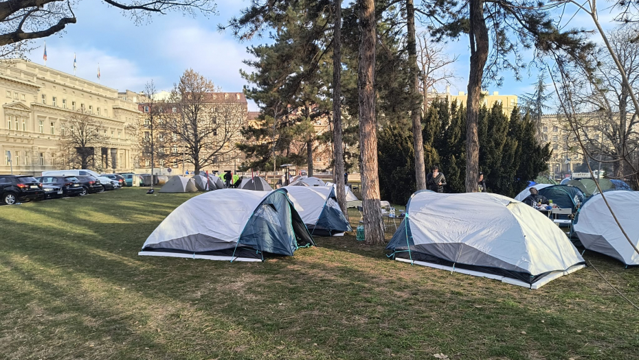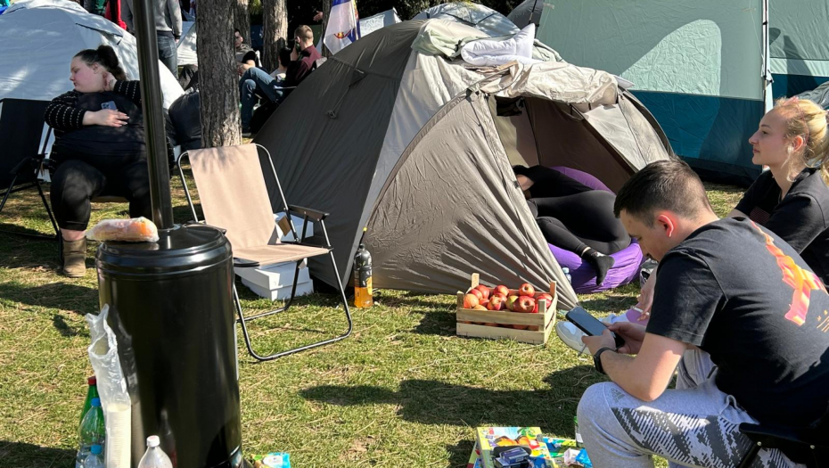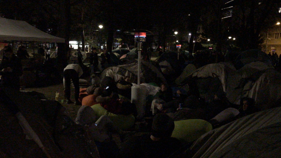 Studenti koji traže da nastava na fakultetima počne najkasnije do 17. marta proveli su noć u šatorima, u Pionirskom parku. Kako su nam potvrdili i jutros, ostaće tu do ispunjenja njihovih zahteva. Od ranog jutra brojni građani obilaze studente u parku. Mnogi su im doneli doručak i posluženje. Poručuju im da se izbore za pravdu, da bi mogli da nastave školovanje. Veliki broj studenata koji žele da uče pristigao je u Pionirski park.