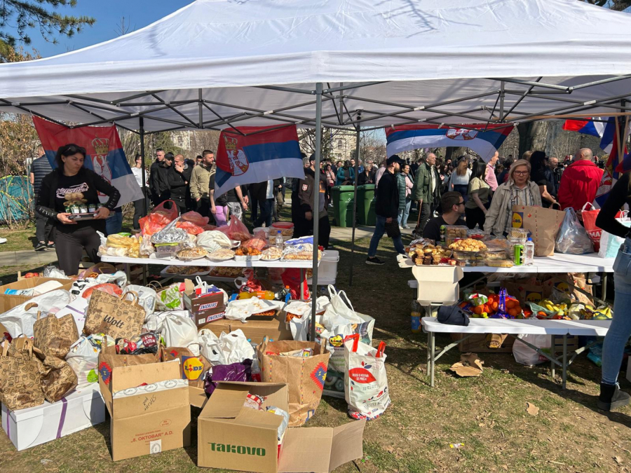 Brojni građani nastavljaju da dolaze u Pionirski park. Tri gospođe spremile su pite i peciva i donele studentima koji su noć proveli u šatorima.