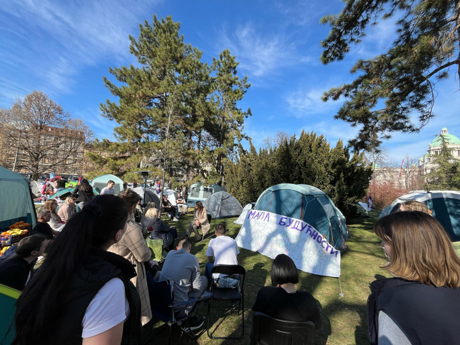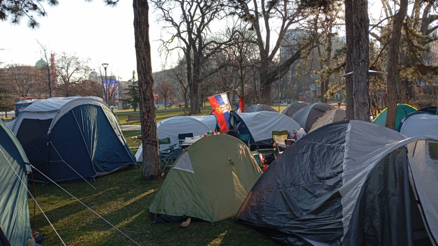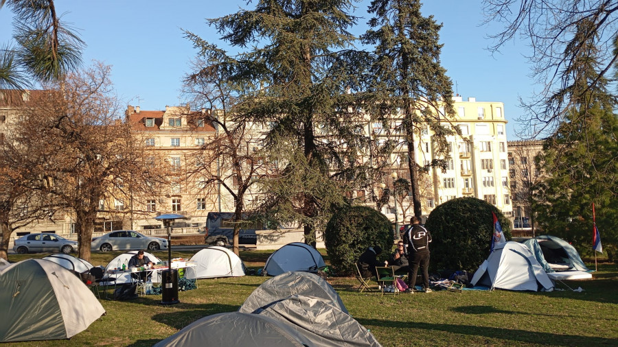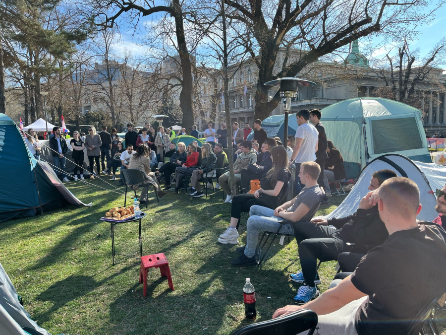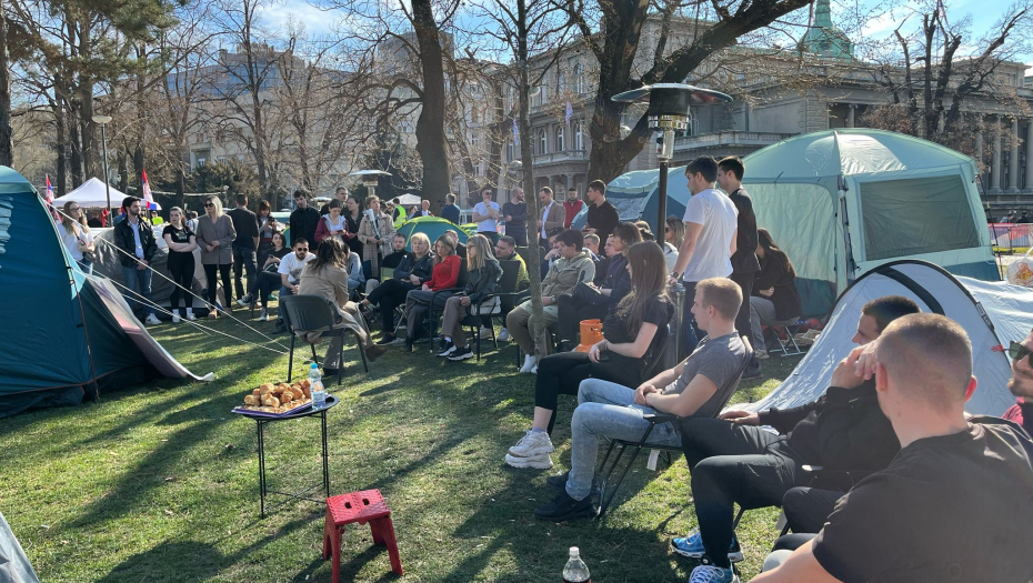Studenti koji traže da nastava na fakultetima počne najkasnije do 17. marta proveli su još jednu noć u šatorima, u Pionirskom parku. Ogroman broj studenata se pridružio studentima u Pionirskom parku Novi šatori samo niču, uskoro ponestaje mesta u parku. "Mi nećemo podršku Aljbina Kurtija. Nećemo podršku bilo kakvih ljudi koji rade protiv interesa Srbije", istakli su studenti koji žele da uče