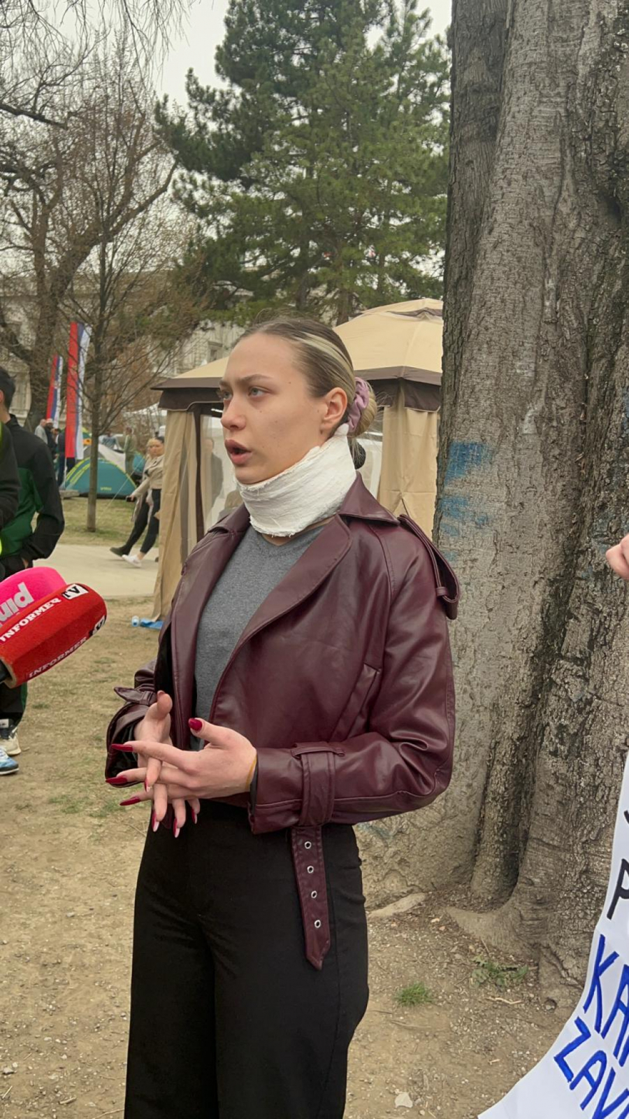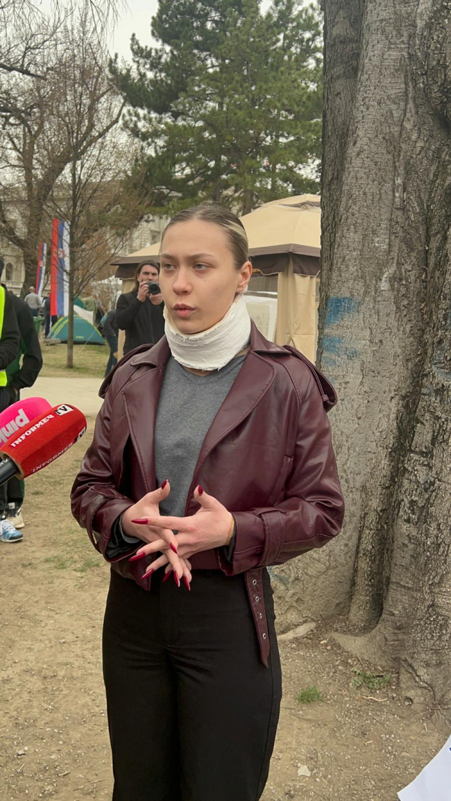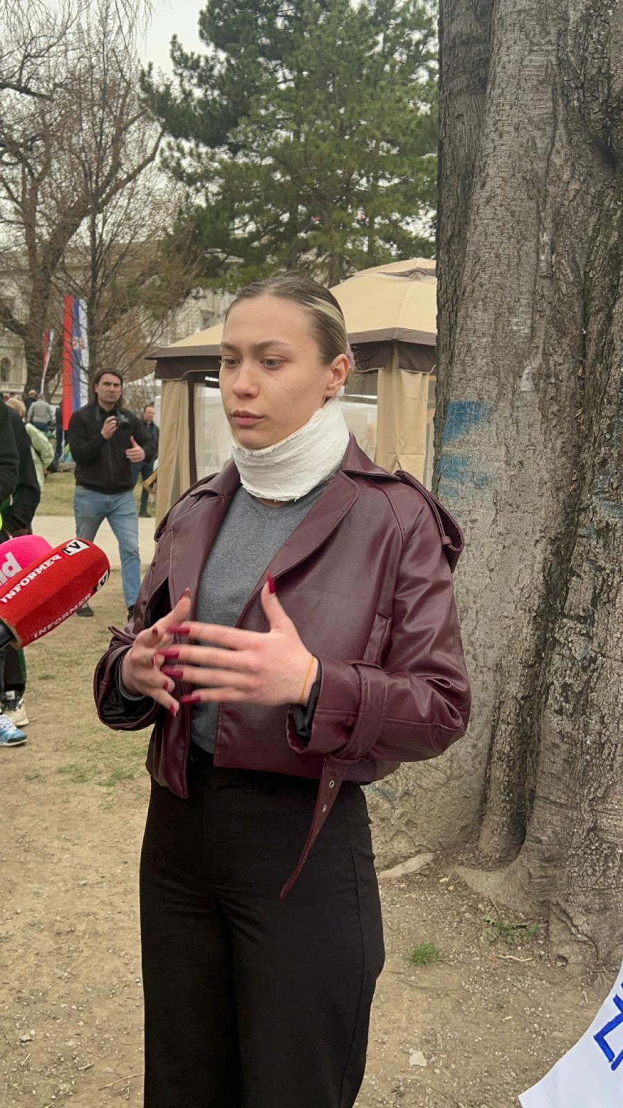 - Pretrpela sam nasilje od strane moje profesorke, indoktrinirana sam od strane učenika koji su mi fizički branili da ja uđem u školu. Gurali su me, dobacivali mi, skandirali, gde sam se osetila nemoćno i jako uplašeno. Ako živimo u pravičnoj Srbiji i zalažemo se da ona bude bolje mesto, to ne sme da se dešava. Ako smo pored svih štrajkova gledali da mora da bude pravde, onda je mora biti u svakom sistemu. Takvu zloupotrebu niko ne sme da doživi, naročito ne od strane jedne profesorke. Molim ljude da nađemo rešenje kako će srednjoškolci, osnovci završiti ovu školsku godinu. Molim profesore da se osveste, to je njihova moralna dužnost, jer će posledice nezavršetka godine mogle biti kobne po njih. Manipulacija srednjoškolcima nije rešenje - rekla je Marina.
