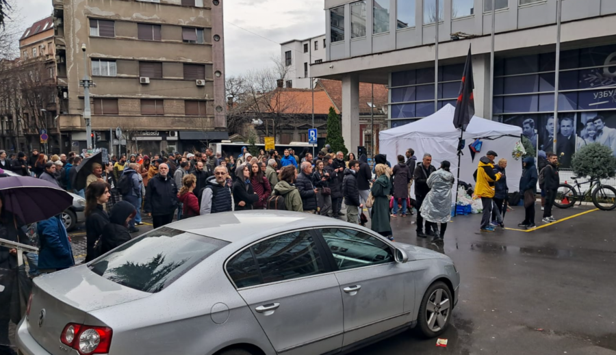 Studenti blokaderi se okupljaju ispred Radio televizije Kragujevac