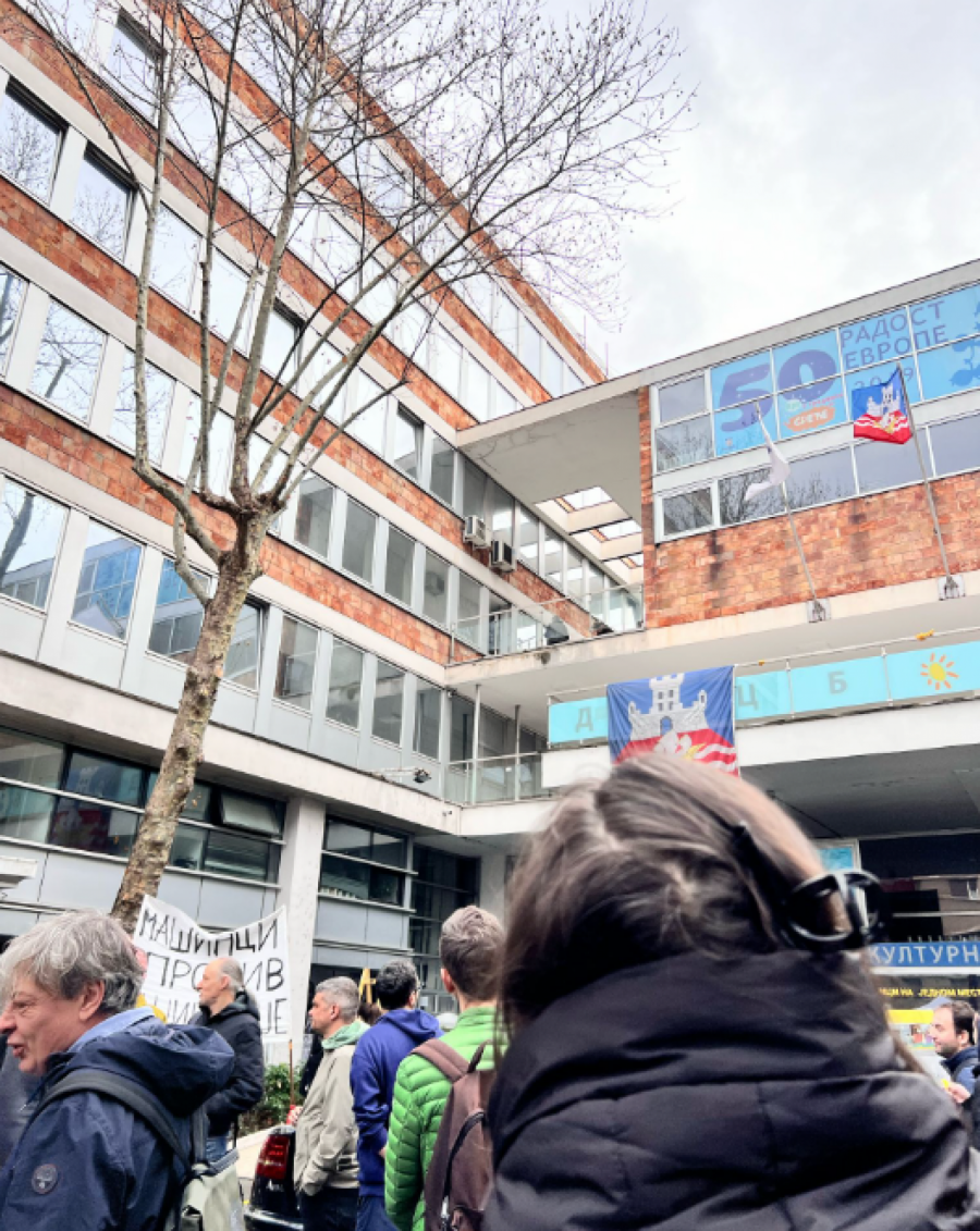 Kamera RTS izašla je nešto pre 9 sati da snimi dešavanje ispred zgrade, a boljševički plenumaši su to negodovali.