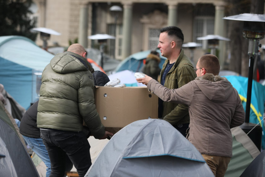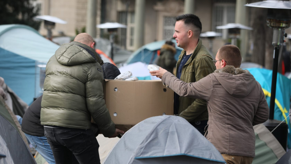 - Sinoć je padala kiša, studenti su mokri, ne bih imao ovo da mi jedna gospođa nije donela, sada mi je poslužila. Noge su im mokre, nemaju druge patike, čarape, sada postaju teži uslovi za izdržavanje ali izdržaćemo dok se ne izborimo za sva naša prava, koja su bila normalna do novembra. Samo želimo da učimo - rekao je Miloš.