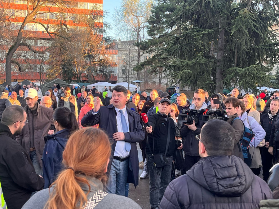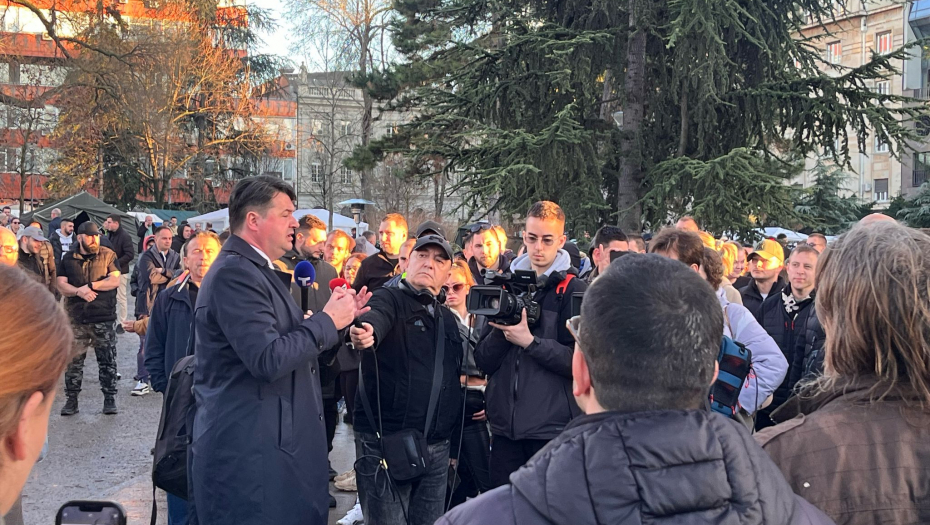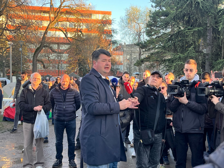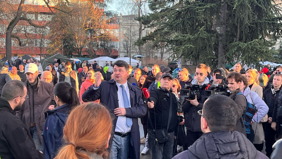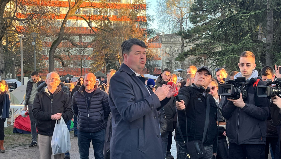 - Juče smo poslali pismo svim rektorima državnih univerziteta Republike Srbije i čekamo odgovore. Kad se to desi, sazvaćemo press konferenciju. sinoć je padala i kiša, ali nismo poklekli pred nasilnicima i siledžijama. Sinoć je student blokader preskočio ogradu i izazvao jači incident. Mi nismo vaspitani da provociramo bilo koga. Kada ste videli da smo ikoga targetirali, linčovani? Teži su uslovi, šatori su pokisli, mokre su noge, neki nemaju šta da presvuku. Apelujemo na sve da nam se što pre ispune zahteve. Pozivamo sve kolege da dođu u park i još jednom hvala što ste došli da nas ispratite.