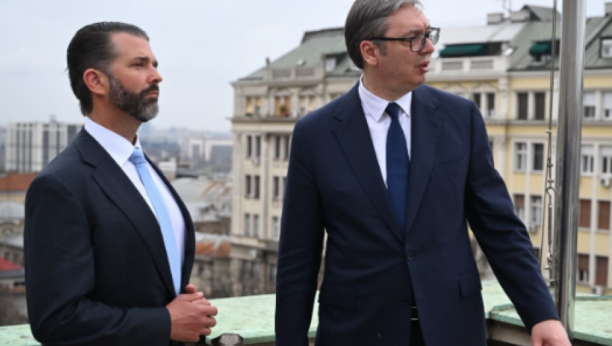 Prijateljski razgovori između Vučića i Trampa Juniora u Beogradu.