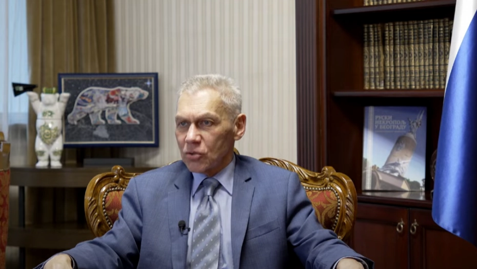 "Želim da naglasim i ponovim da Srbija nije prihvatila sankcije što nama daje i davalo nam je u toku ovih tri godine mogućnosti za nastavak i razvoj naših odnosa. Situacija oko Srbije i Evrope je takva da smo, jer nismo direktno povezani, ima između nas EU, NATO i naravno zemalja koje su podržale sankcije u odnosu na Rusku Federaciju, imali ozbiljne smetnje, i one za sada postoje", kaže ambasador.