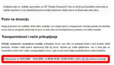 "Svakog dana od 10.3.2025. do 14.3.2025. od 8.00 do 10.00 i 16.00 do 18.00 u kafiću VIP28 primamo donacije", piše u objavi.