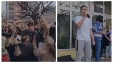 Inače, ispred "Ivo Lole Ribara" govorio je gimnazijalac Nemanja Kočić, juče u 17:20 časova. Ovaj hrabri momak je stisnuo petlju i pokazao da želi da uči i da mu je muka od onih koji mu to ne daju.