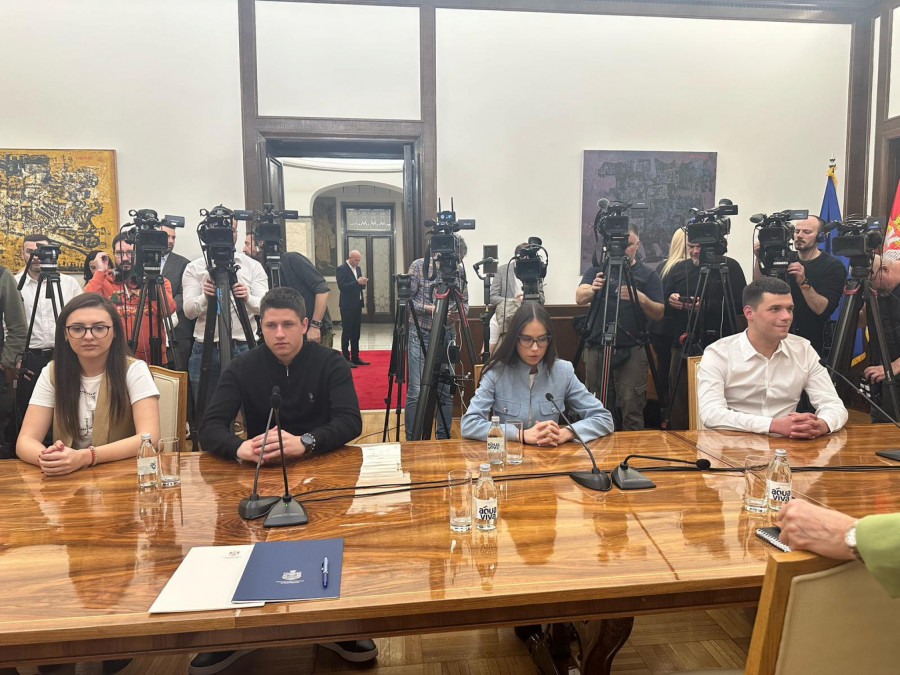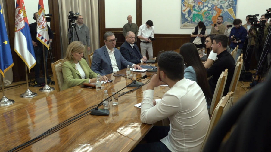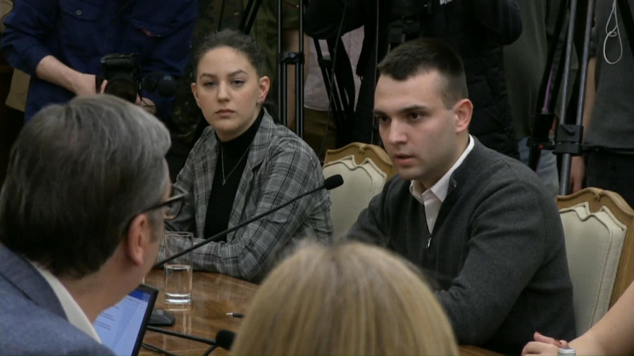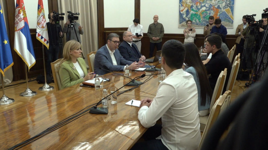 - Želimo iskreno da vam kažemo: svaka vam čast, jer niko u ovoj zemlji do sada, počevši od rektora do dekana, svima smo pisali, poštovani predsedniče, ali jedino se javio nenadležan, ovi nadležni se ne javljaju. I mi dolazimo u situaciju da nas prima predsednik Republike, a rektori, dekani, ne samo da kažu nećemo da vas primimo, nego ćute, prave se da ne postojimo. Kao da smo studenti drugog reda. Možda znamo da bi trebalo da se prikladno obučemo i izvinjavamo se na tome. Takođe, želeli bismo da vas pitamo kao predsednika Republike, osobu koja ima najveći legitimitet u ovoj zemlji. Sa kime da razgovaramo kada niko neće? Ko će da nas sasluša? Specifična je situacija.