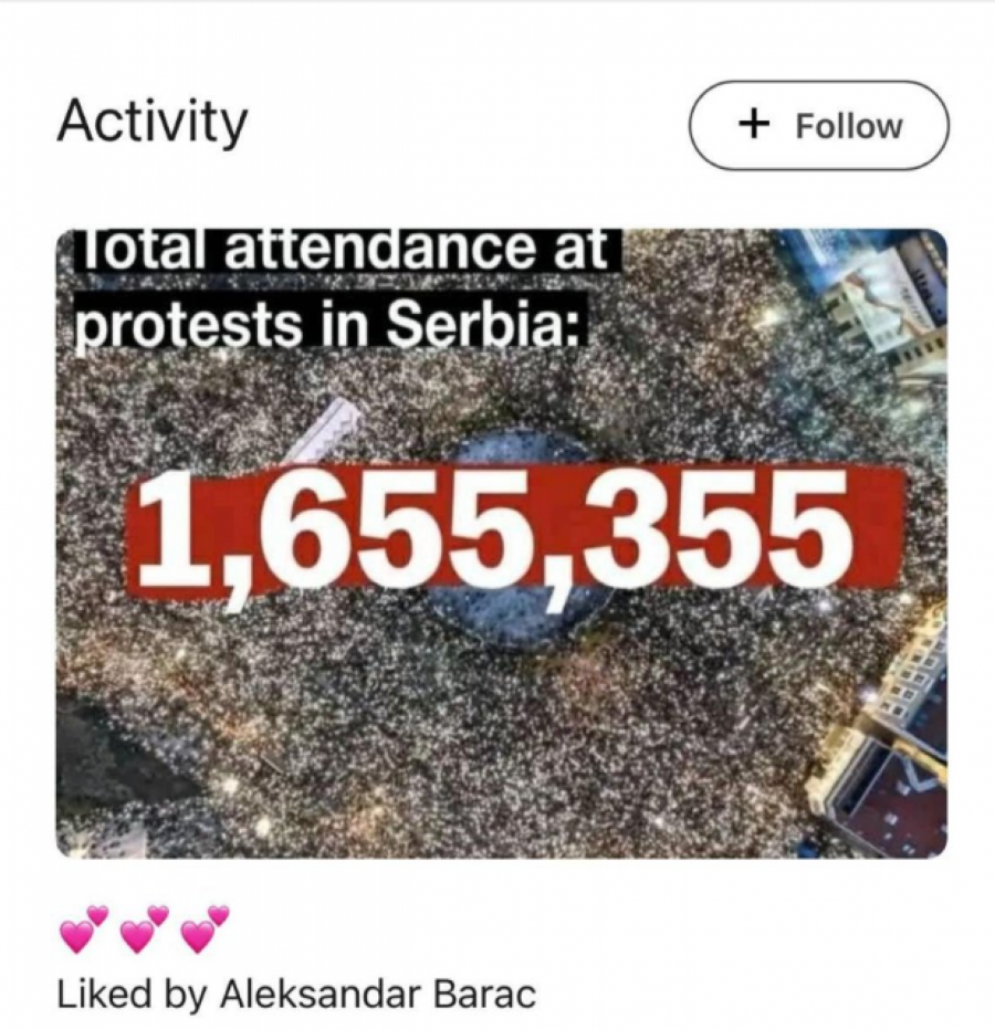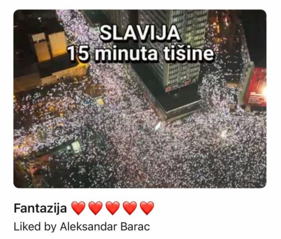 I to bi verovatno bila vest koja bi prošla sasvim ispod radara javnosti u Srbiji da se Barać nije redovno oglašavao na društvenim mrežama tokom protesta blokadera 15. marta.
