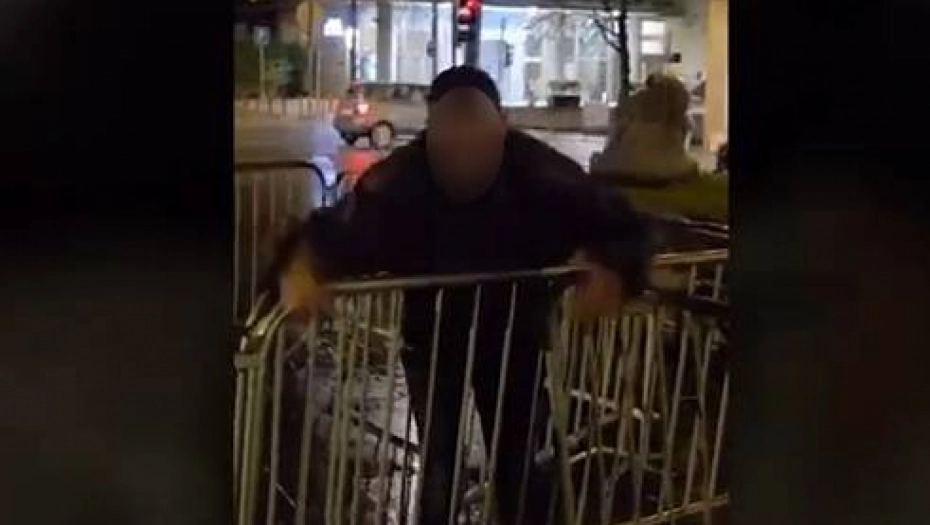 Napadač je gurao metalne ograde, psovao sve redom, vređao predsednika Srbije Aleksandra Vučića i tražio fizički obračun.