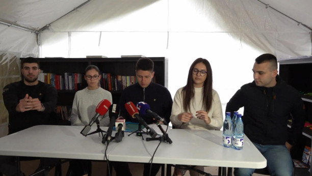 - Osim ove informacije pomenuo sam da je u sredu glasano, većina profesora Medicinskog fakulteta UB je glasalo za obustavu štrajka, svi žele da se vrate na posao, svi želimo da se vratimo na fkultete, a druga informacija jeste da smo danas pozvali rektora BU Vladana Đokića, kao i dekane Medicinskog, Stomatološkog, Farmaceutskog, Biološkog i Fakulteta ua specijalnu edukaciju i rehabilitaciju, pozivamo ih i ovim putem da dođu sutra na razgovor kod nas u Pionirski park u 12 časova, želimo da ih pitamo pored ostalog da li naši roditelji treba da nastave da nam plaćaju stanove, da li studenti koji nisu na budžetu da li treba da plate školarinu, to su pitanja koja zanimaju kako nas, tako i naše roditelje. Zašto da mi ne znamo odgovore na ta pitanja. Rektor je rekao da on neke svoje odluke želi da saopšti uživo i mi ga pozivamo i rektora i pomenute dekane da dođu sutra u 12 časova u Pionirski park , nadamo se da će nas makar sada ispoštovati i očekujemo da će doći jer se osećamo bespomoćno i beznadežno i zabrinuto. Ovo je još jedan naš poziv na dijalog. Ovim putem se zahvaljujemo predsedniku Vučiću što nas je jedini primio i ako nađe malo vremena, značilo bi nam da nas poseti, rekao je da je i on "ćaci" pa da se eto, malo družimo.