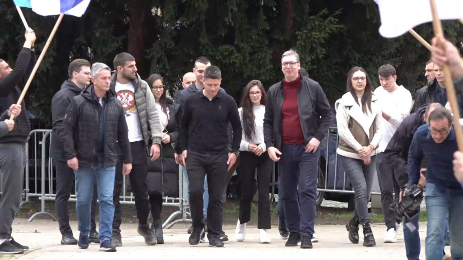 - Pronalazićemo rešenje i gledaćemo da pomognemo sve što možemo makar donošenja leks specijalis oko produžetka godine makar zbog vas koji želite da učite. A sasvim sam siguran da odgovorni za anarhiju, odgovorni koji su hteli da vas ostave da ne završite godinu na kraju će morati da objasne svima brojnim nadležnim organima zašto ikako su činili. Niko ko voli mlade ljude ovo im ne bi učinio. Užasno brinem zbog toga, sekiram se ali će država pomoći. Ne može nerad da pobedi rad. I nemogu oni koji nisu marljvi da pobede vredne. I ne mogu profesori koji ne žele da rade da pobede one koji hoće da rade i koji žive za decu, a ne samo za svoje plate - poručio je Vučić.