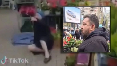 "Šta uradi čoveče? Pa to je nečija majka! Što ste je gurnuli?", čuje se kako govori muškarac koji prilazi da pomogne ženi.