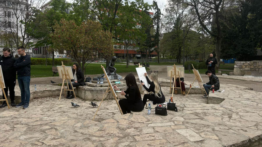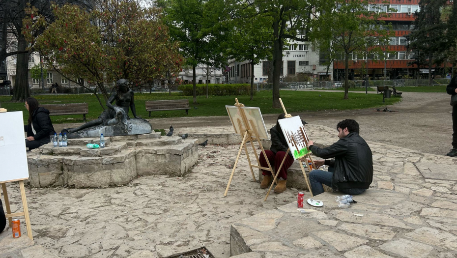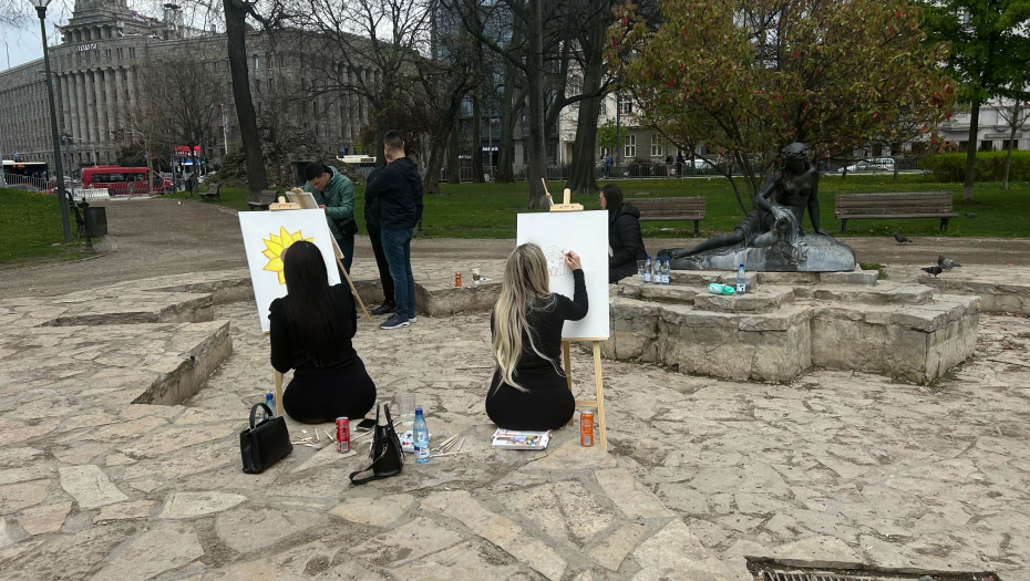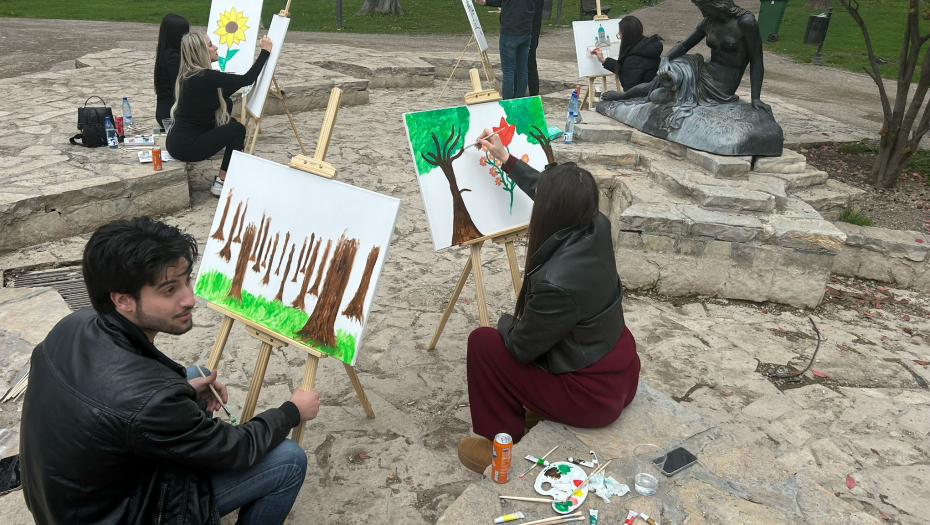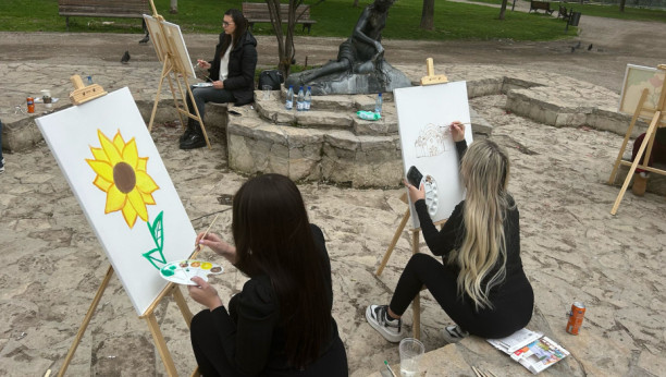 SLIKANJE POD OTVORENIM NEBOM Studenti koji žele da uče organizovali slikarsku radionicu u Pionirskom parku (VIDEO)