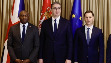 Takođe, ponosan sam na činjenicu da smo pokazali kako se demokratija čuva, kako se zrelošću i strpljenjem čuva mir i stabilnost u zemlji i nastavićemo tako da se ponašamo. U svakom slučaju, sigurni smo da će i Velika Britanija i mnoge druge zemlje s ponosom moći da slede primer Srbije u budućnosti, da bez ikakvog nasilja, bez ikakve primene sile se tako odnose prema onima koji demonstriraju protiv njihovih vlada ili recimo kada upadnu u BBC, da se na isti način odnose kao što se mi odnosimo prema demonstrantima koji upadaju ovde u Javni servis, odnosno Radio Televiziju Srbije. Za nas je od izuzetnog značaja saradnja sa Velikom Britanijom i ova poseta gospodina Lamija je za nas od vanrednog značaja i mi se nadamo da će te posete biti češće i da ćemo uvek u budućnosti moći da računamo na ovakvu podršku Velike Britanije, racionalnom pristupu rešavanju svih problema.