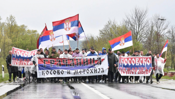 I tokom današnjeg puta pratile su ih vremenske nepogode, smena jakog vetra i kiše, ali grupu od 160 Srba sa KiM ni to nije sprečilo da nastave svoj put, ali vidno umorni i iscrpljeni posle toliko dana pešačenja.
