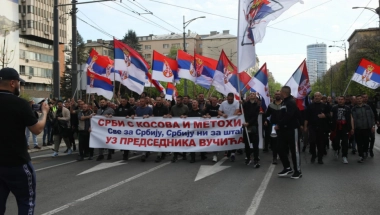 Srbi sa Kosova i Metohije koji su od 6. aprila pešačili ka Beogradu kako bi pružili podršku predsedniku Srbije Aleksandru Vučiću i našoj državi stigli su na svenarodni skup u Beograd.