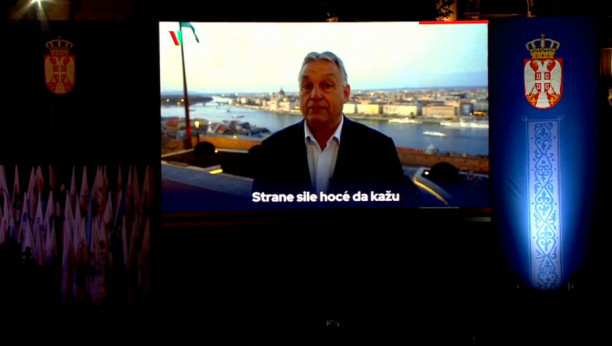- Dragi Aleksandre, dragi srpski patrioto. Pozdravljam vas iz Budimpešte. Već mesecimo pratimo šta se dešava u Srbiji. Situacija je poznata, strane sile pokušavaju da se umešaju u živote Srba. ovo se dešava i kod nas. Strane sile hoće da kažu Srbima kako da žive. I kod nas to rade. Stalno napadaju one, koji se zalažu za suverenitet Srbije. I nas zbog toga napadaju. Vidimo da se ne predajete. Vidimo da se hrabro borite, jer hoćete suverenu Srbiju. Niste sami, vaša borba je i naša borba. Srpske patriote mogu da računaju na mađarske patriote. Živeo predsednik Vučić, živela Srbija - poručio je Orban srpskom narodu i Vučiću.