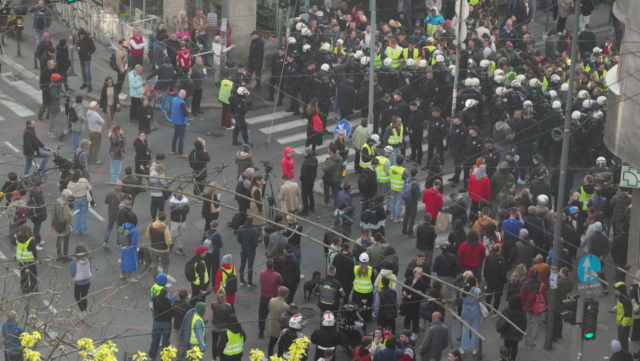 - Kako i pored toga okupljeni nisu oslobodili prolaz službenim vozilima, policija je bez upotrebe sredstava prinude, uz prethodno upozorenje i naređenje primenila tzv. potiskivanje okupljenih na jednu i drugu stranu kako bi oslobodili prolaz vozilima - navedeno je u saopštenju.