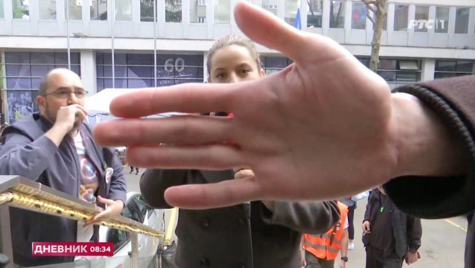 Nasilni blokaderi brutalno su se ustremili na reporterku RTS-a koja se 16. marta ujutru uključila u program uživo ispred zgrade.