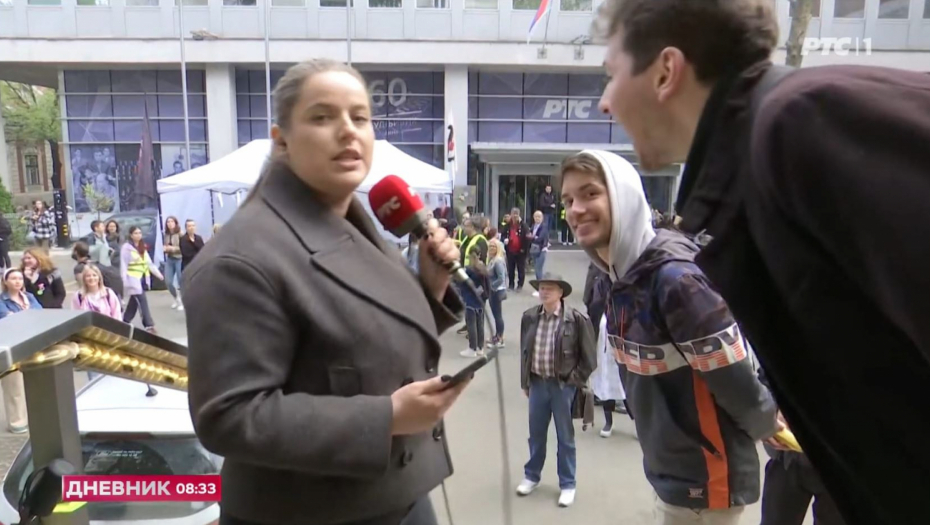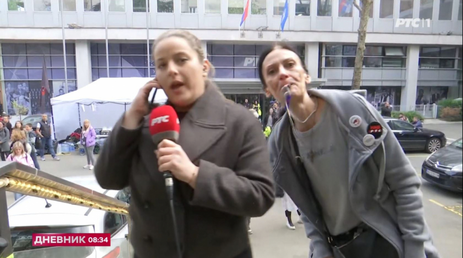 Kada se reporterka RTS-a uključila u vesti Jutarnjeg programa ispred zgrade javnog servisa, usledio je užasan progron.
