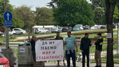 Naime, grupa blokadera je u Beogradu razvila transparent "Da mu j... mir i stabilnost".