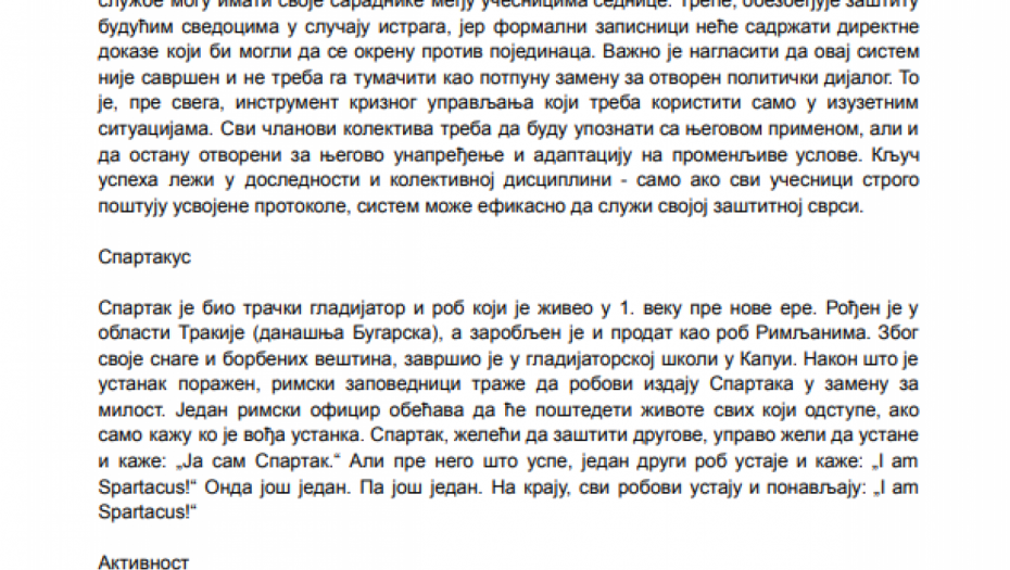 Ono što izaziva posebnu pažnju jesu tajansteveni delovi. Pa tako u jednom delu dokumanta pod naslovom „Aktivnosti" navodi se sledeće: