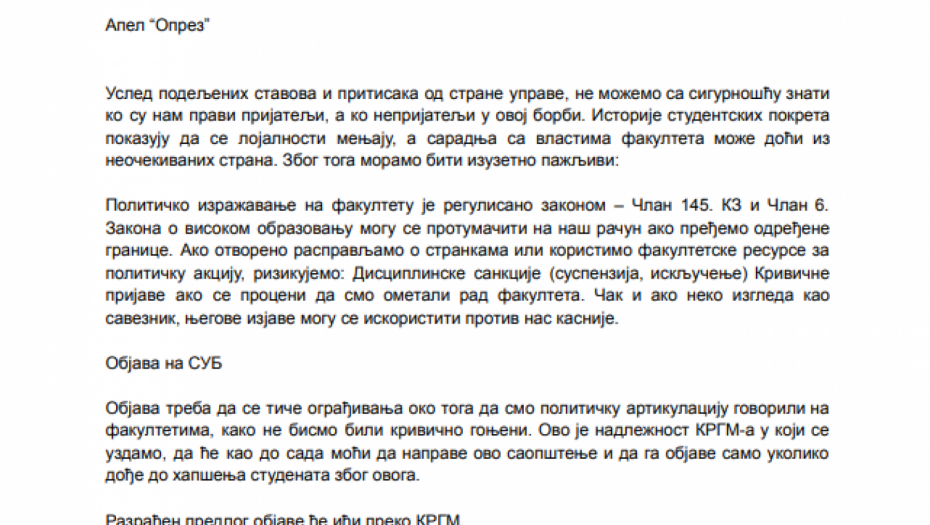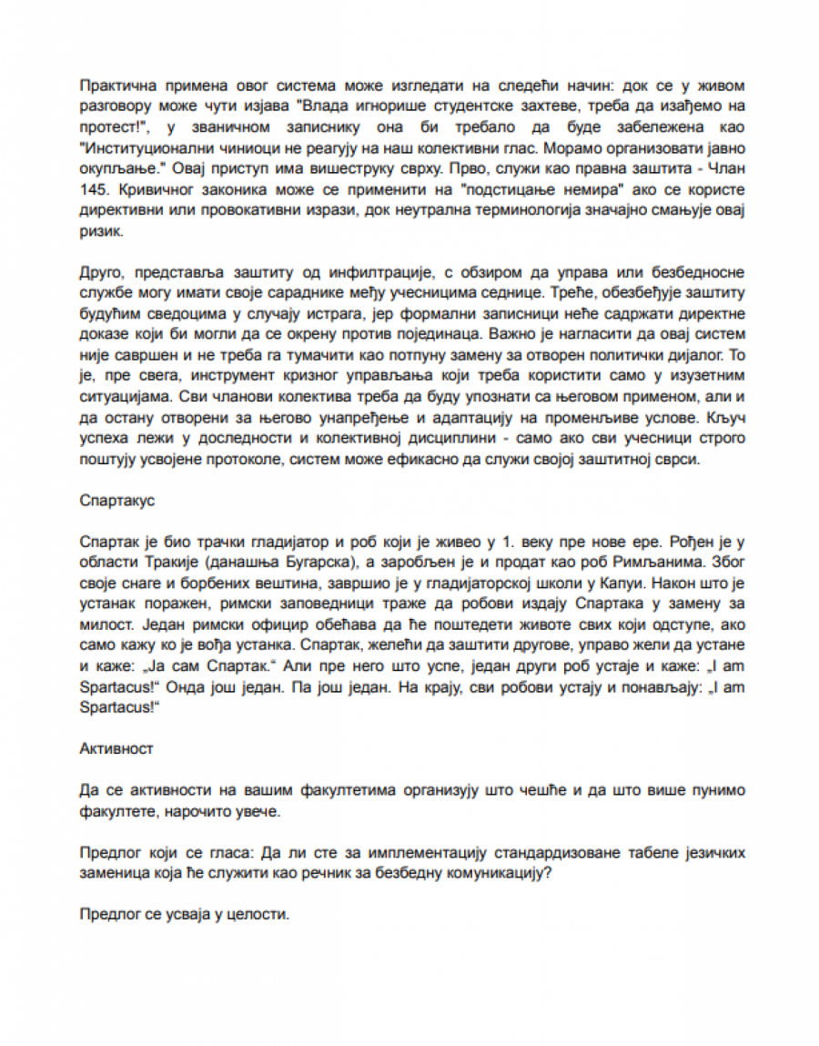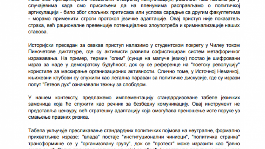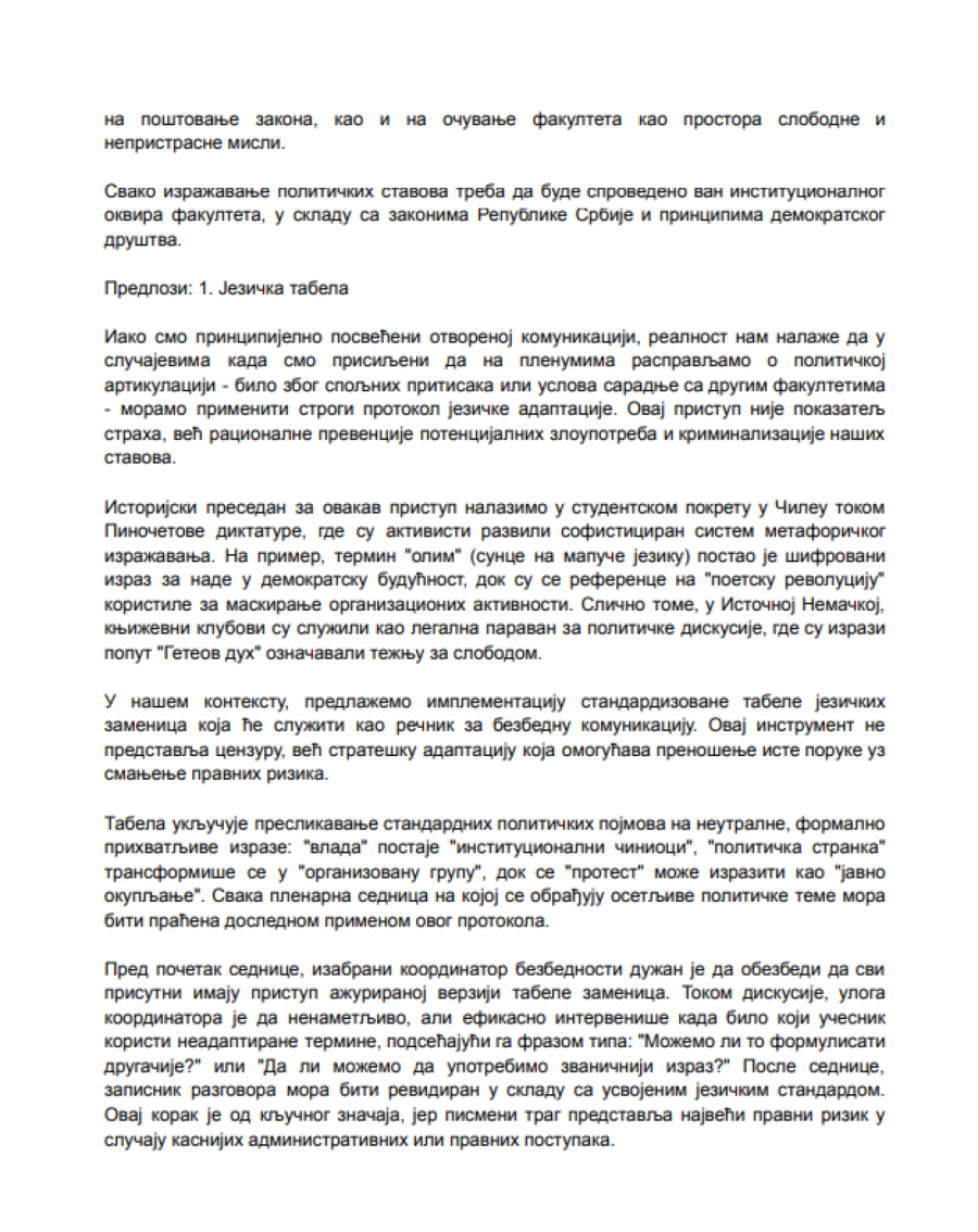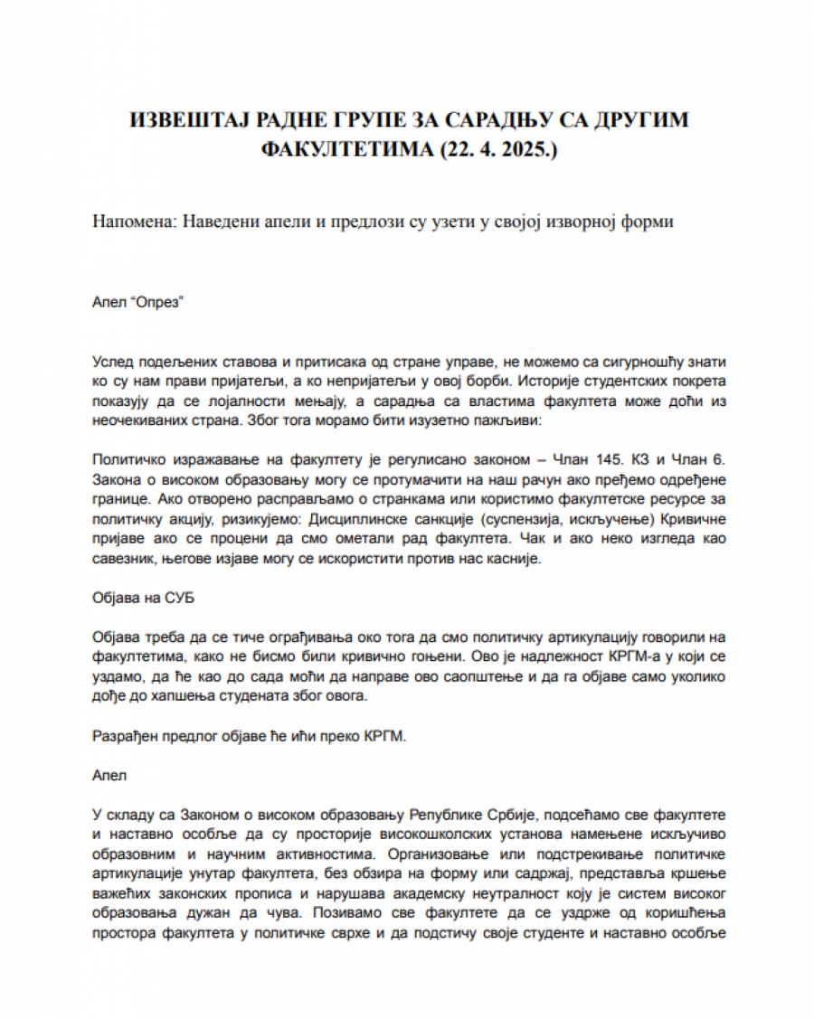 Naime, danas je otkrivena tajna komunikacija plenumaša Pravnog fakulteta u Beogradu, tj. izveštaj "Radne grupe za saradnju sa drugim fakultetima".