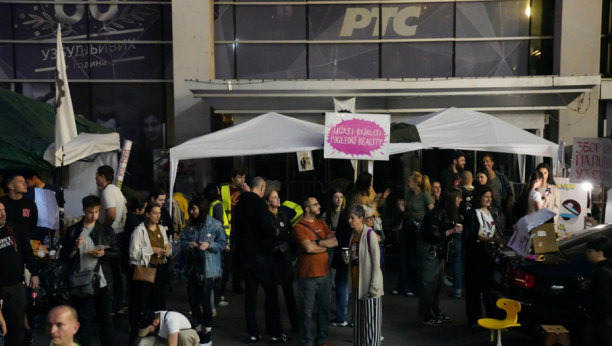 Ispred zgrade RTS-a u Takovskoj jutros je grupa blokadera.