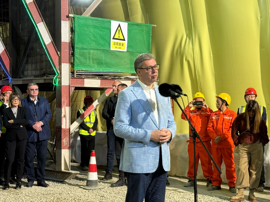 - Mnogo sam srećan kada vidim kako ovde napreduju radovi. Ovo je 44,1 km ukupno. Mi smo u tunelu koji će biti najduži tunel u Srbiji, za godinu i nešto će biti otvoren za saobraćaj. 7.007 metara ukupno, obe cevi. Siguran sam da će služiti našem narodu pre svega u očuvanju života, zatim bržem prometu, i da će dalje doprineti ekonomskom razvoju, novim radnim mestima... Jednom kada ne budemo imali priliku da ne budemo izloženi zločinačkom napadu blokadera i onih koji ih podržavaju i spolja i iznutra.