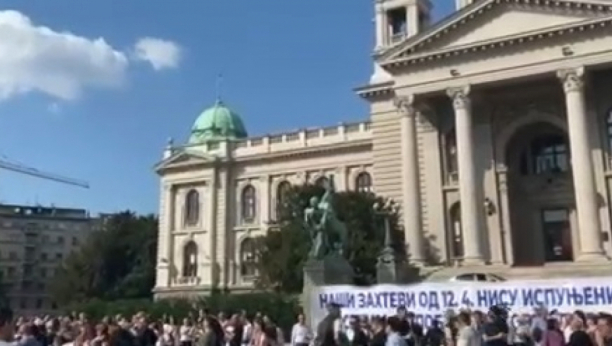 "Aco, Srbine!" se orilo na platou ispred Narodne skupštine, a narod je na ovaj način pružio podršku Aleksandru Vučiću koji se trenutno u SAD bori za interese Srbije.