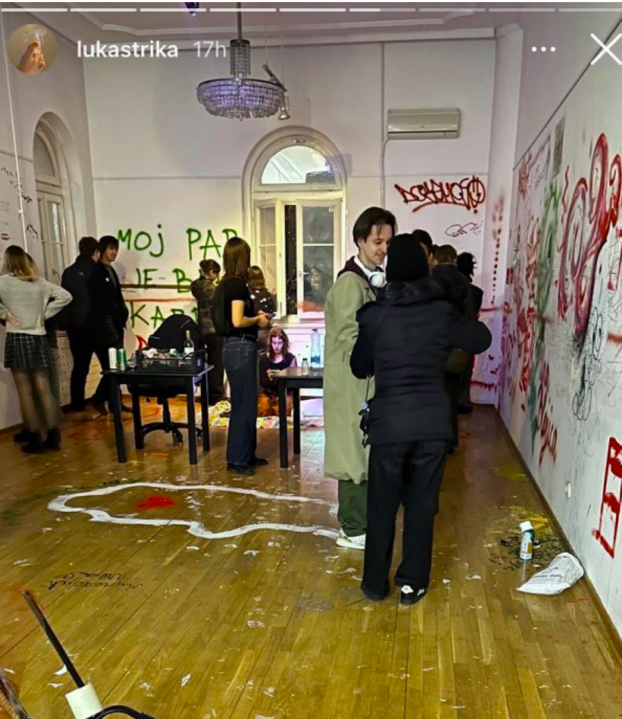 Takođe, pored Luke, sa njim su bili i njegovi prijatelji operativci. Sva četiri lica su 12. 02. 2025. godine nasilno upali u SKC, pokidali kablove i isključili video nadzor, oteli ključeve, zauzeli prostore, izbacili zaposlene i u otetom SKC-u rade važne stvar.