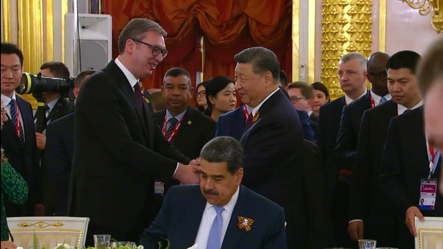 Poručio je da će dati sve od sebe i da će se boriti za interese Srbije. Vučić je tokom večere koju je priredio ruski predsednik za šefove stranih delegacija koje će učestvovati na paradi povodom pobede u Drugom svetskom ratu, rekao da je imao mnogo srdačnih susreta sa liderima sa kojima nema priliku često da razgovara, a da ga danas očekuje važan sastanak sa predsednikom Rusije Vladimirom Putinom.