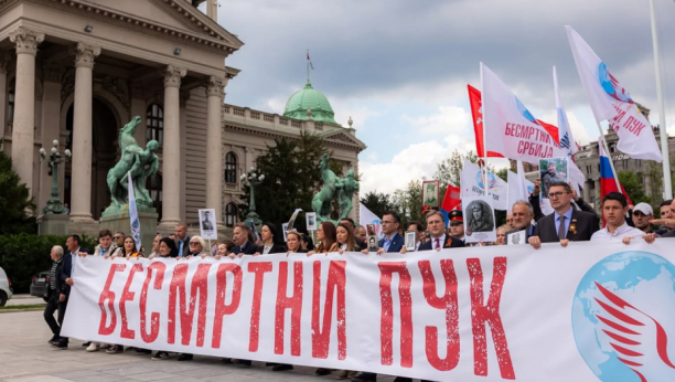 STUDENTI KOJI ŽELE DA UČE OBELEŽILI DAN POBEDE NAD FIŠIZMOM U BEOGRADU: Učestvovali su u maršu Besmrtnog puka (VIDEO)