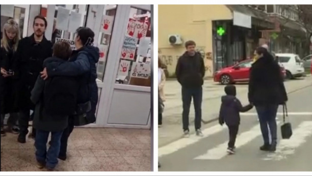 Kako se vidi na snimku koji je nastao u jednoj školi krajem marta u Kragujevcu, blokaderi su stali na ulaz u školu i nisu hteli da puste profesorku sa detetom da prođe.